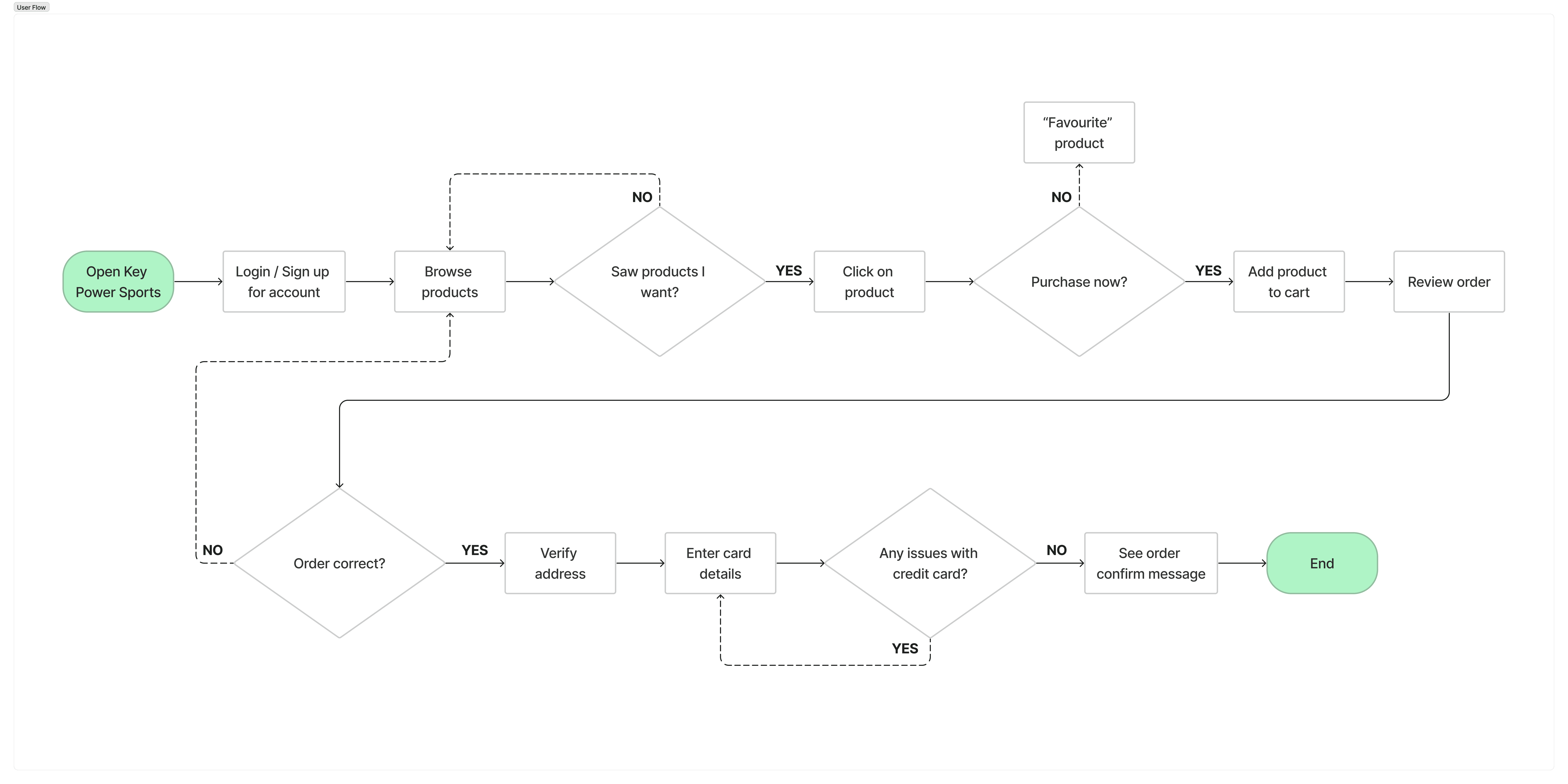 The user flow helps to illustrate how a typical shopper would use the website. It also helps to identify pages needed for the prototype.