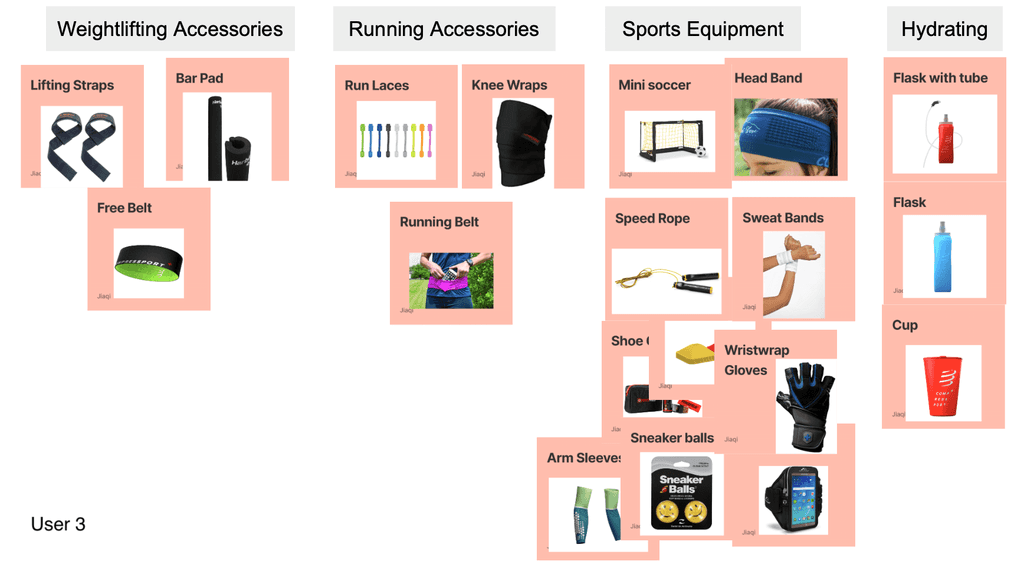 To understand how to categorise the products better, closed cart sort is conducted with 5 users.